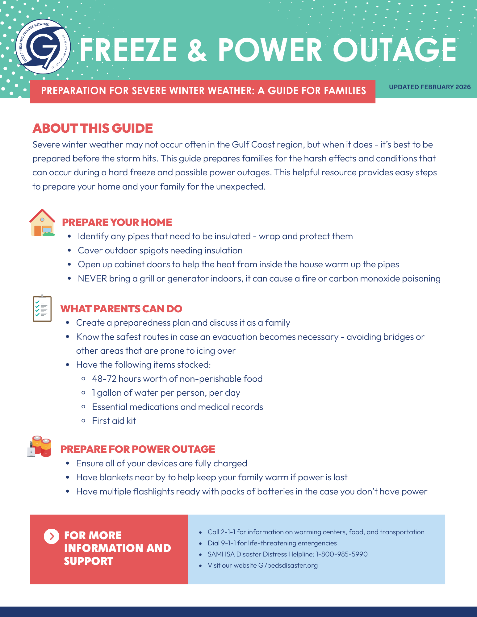 This one-page guide addresses simple steps for families to prepare for the next severe winter storm.